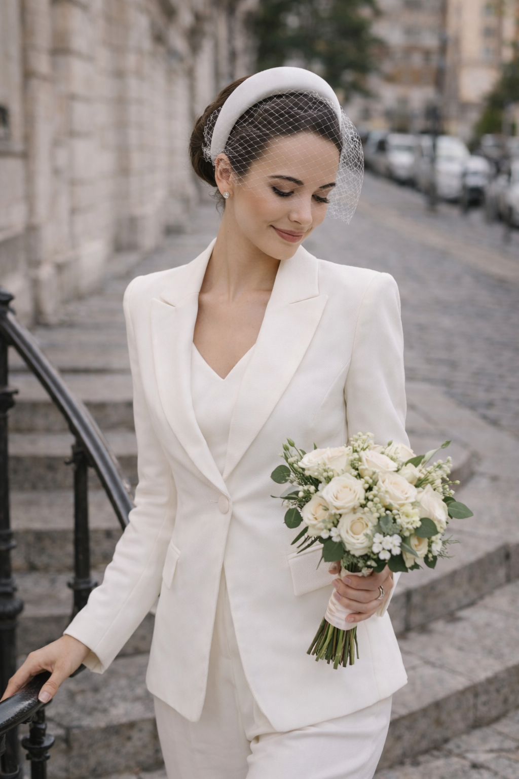 Idéal pour une tenue de mariage moderne, civile ou urbaine, il se porte aussi bien avec un tailleur qu’une robe épurée. Léger et confortable, il structure la coiffure tout en conservant une allure douce et raffinée.